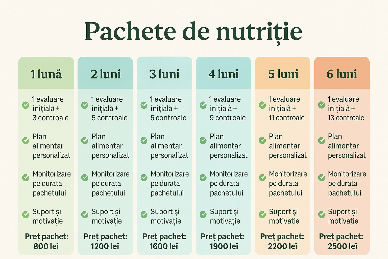 ✔️ măsurători corporale (greutate, circumferințe, analize bioimpedanță – dacă este